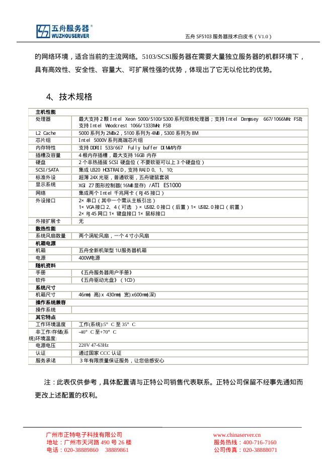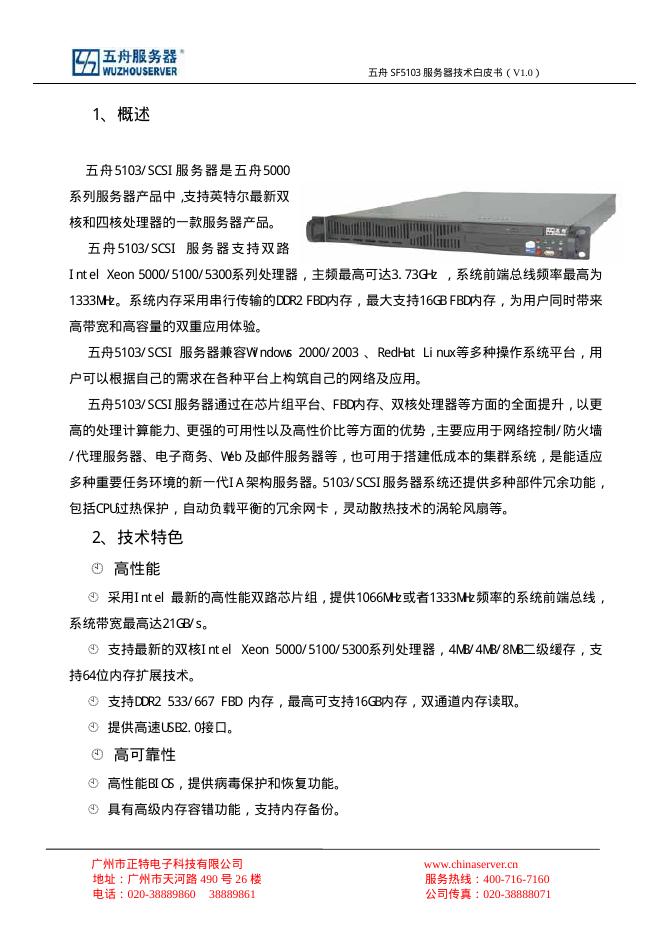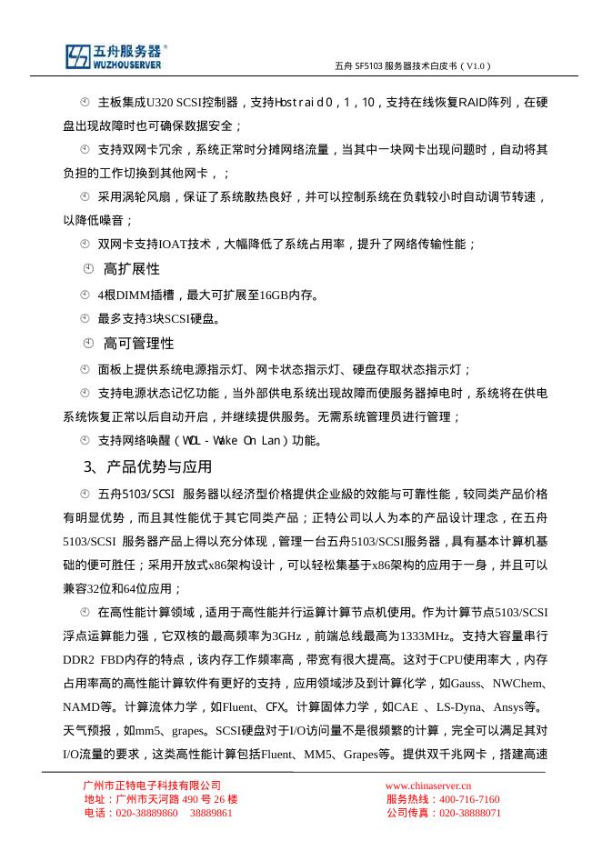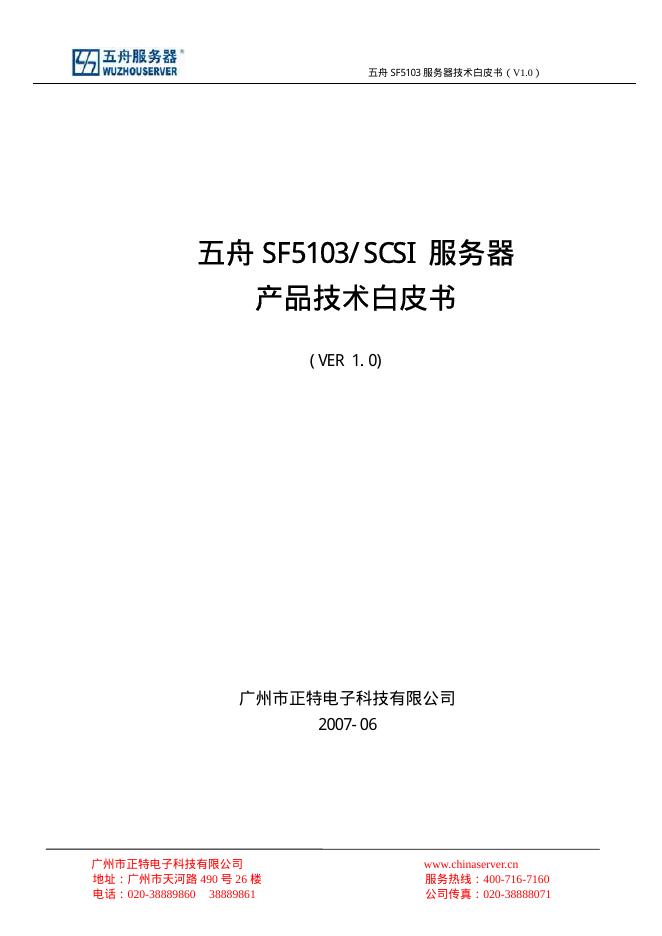 五舟 SF5103/SCSI 服务器 产品技术白皮书 (VER 1.0).pdf