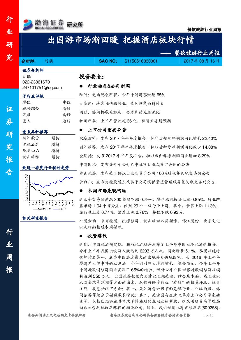 渤海证券:餐饮旅游行业周报:出国游市场渐回暖 把握酒店板块行情.pdf
