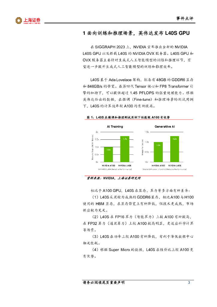 上海证券:通信行业事件点评:英伟达发布L40S GPU,中高速光模块或将受益.pdf