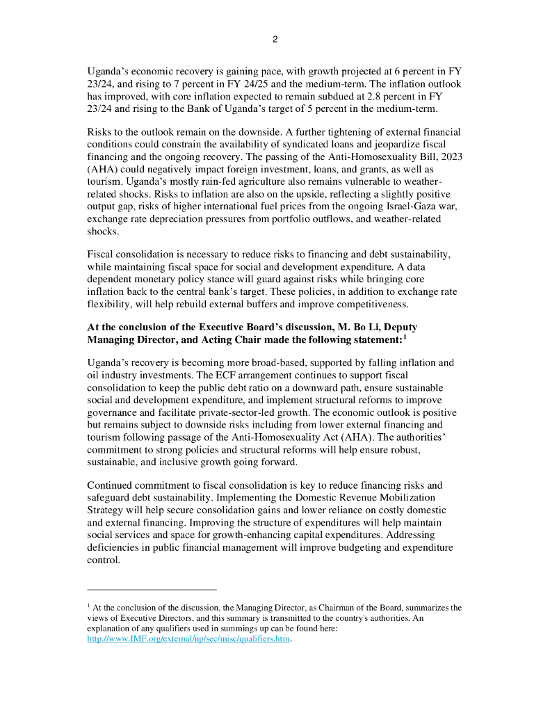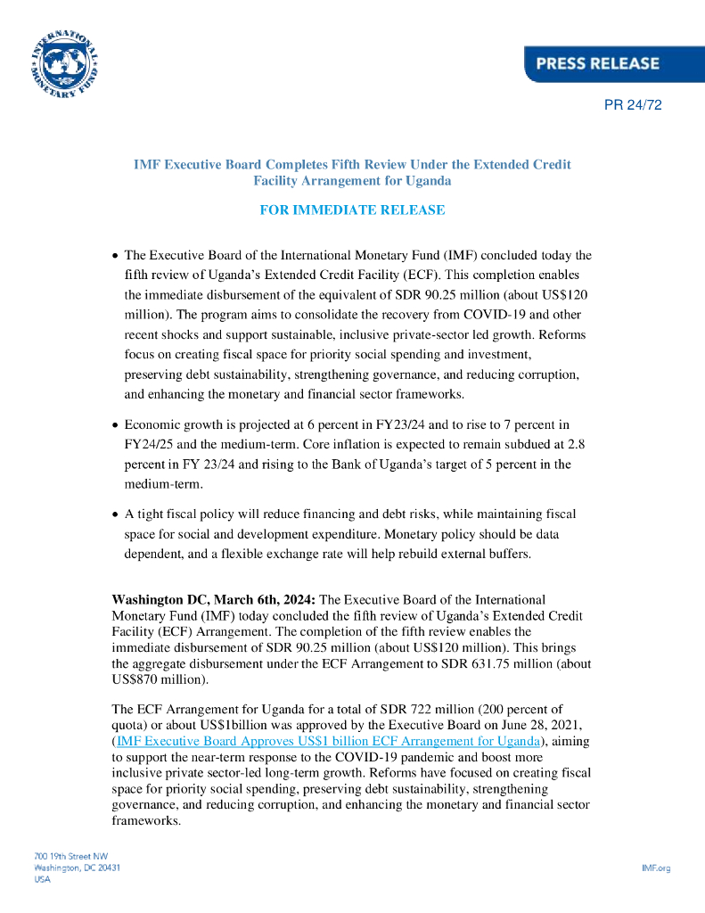 国际货币基金组织:2024年乌干达:根据延长信贷安排进行的第五次审查和要求修改业绩标准新闻稿员工报告(英文版).pdf