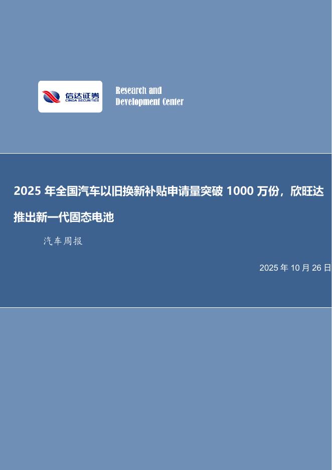 信达证券:汽车行业周报:2025年全国汽车以旧换新补贴申请量突破1000万份,欣旺达推出新一代固态电池.pdf
