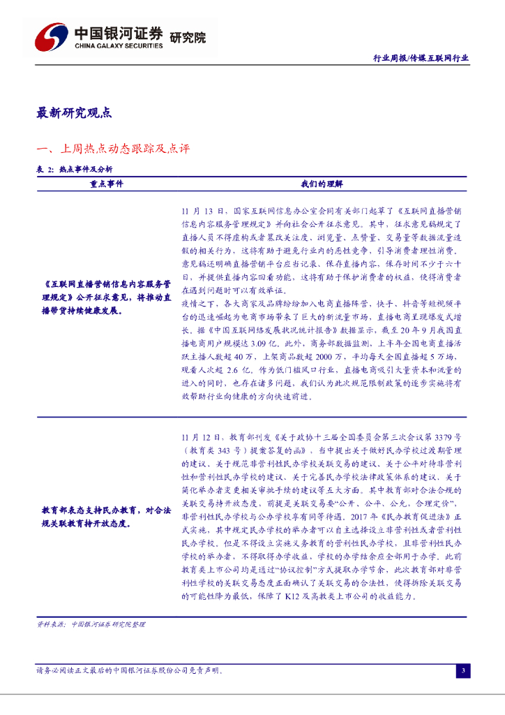 中国银河:传媒互联网行业周报:互联网直播营销加强监管,教育部对合法规关联教育持开放态度.pdf