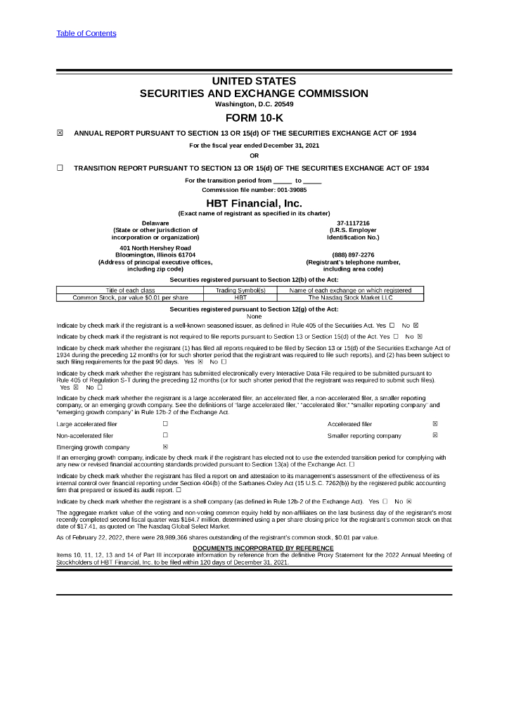 HBT Financial, Inc.(HBT)2021财年年度报告(英文版).pdf