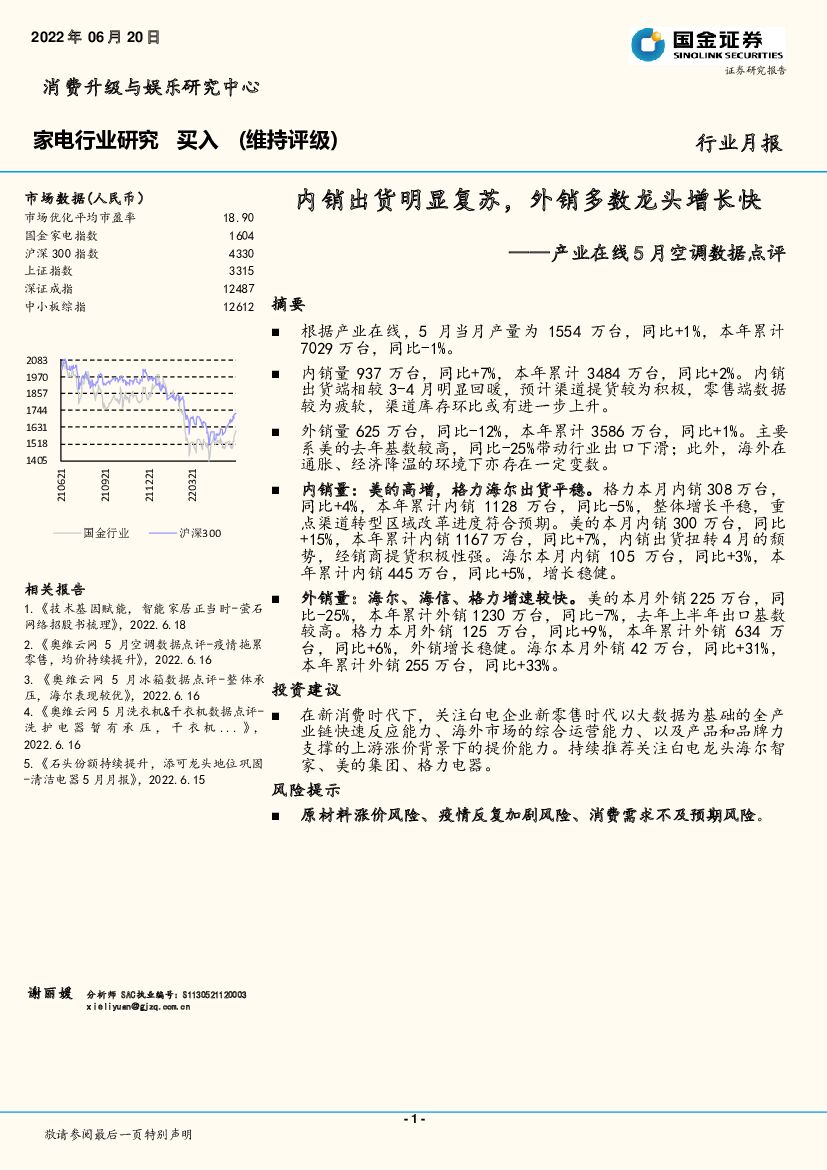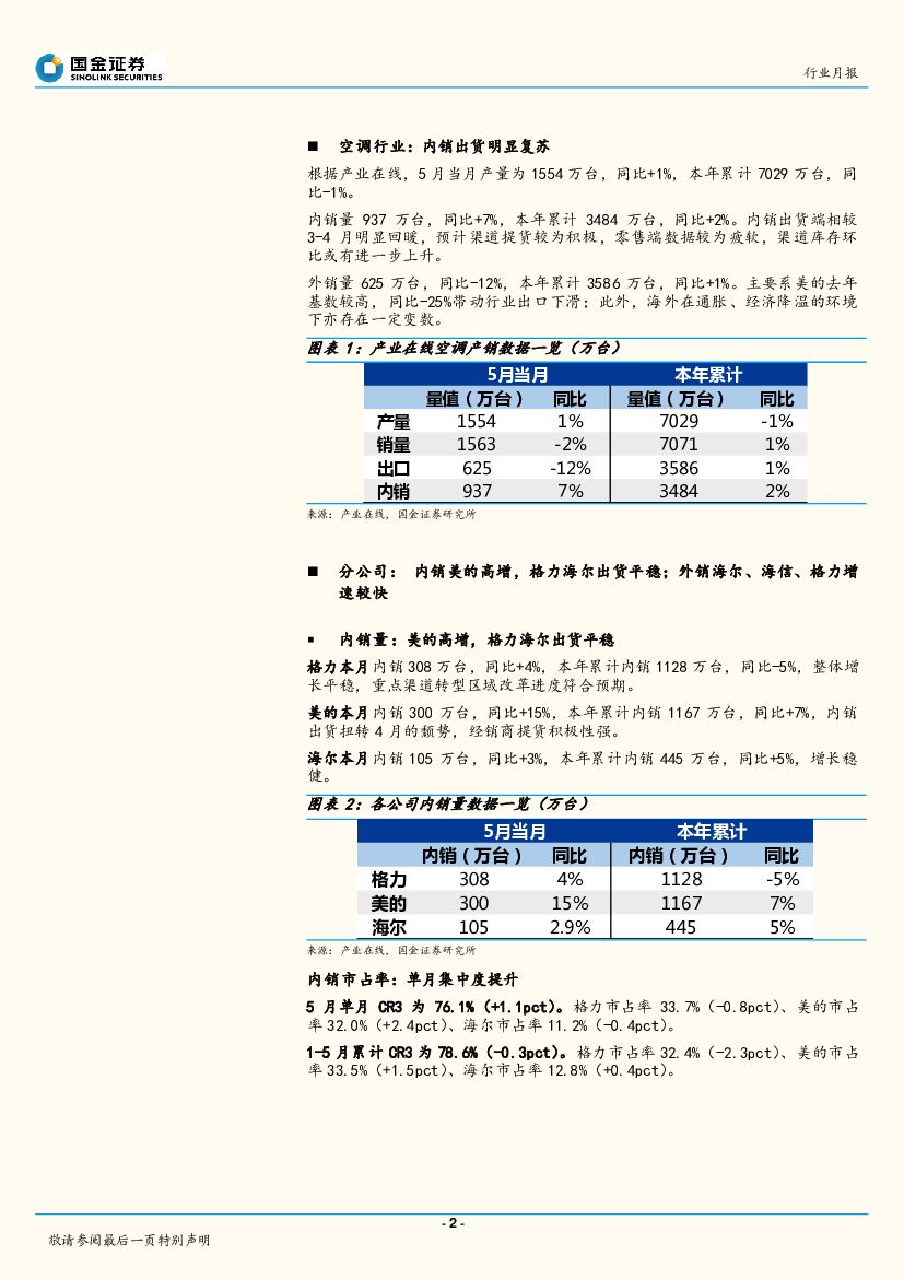 国金证券:家电产业在线5月空调数据点评:内销出货明显复苏,外销多数龙头增长快.pdf