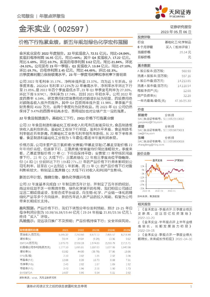 天风证券:金禾实业(002597)-价格下行拖累业绩,新五年规划绿色化学宏伟蓝图.pdf