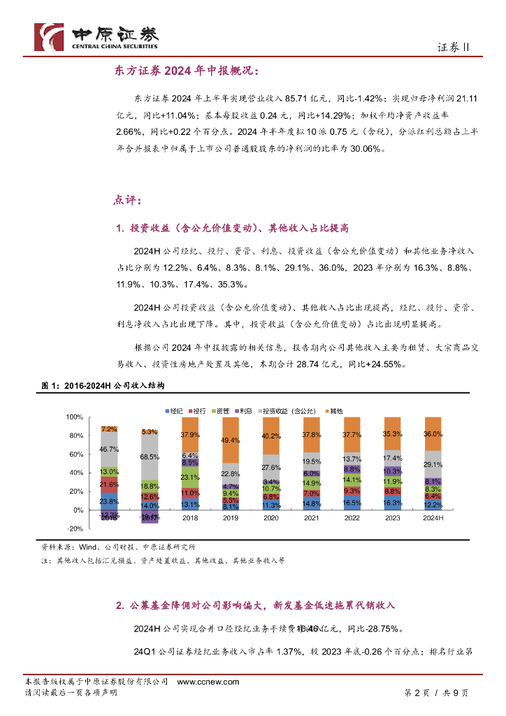 中原证券:东方证券(600958)-2024年中报点评:部分优势业务有所波动,自营奠定业绩持稳基础.pdf