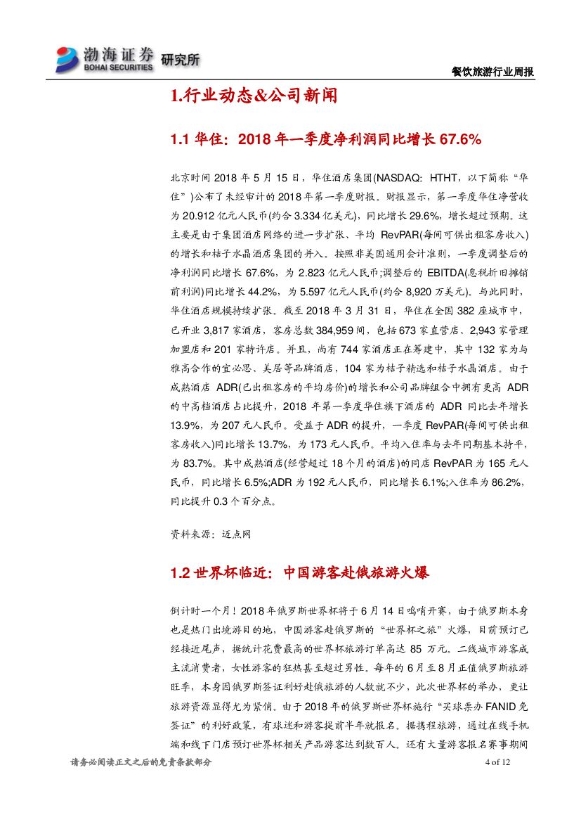 渤海证券:餐饮旅游行业周报:华住一季度增速超预期 持续关注酒店免税板块.pdf