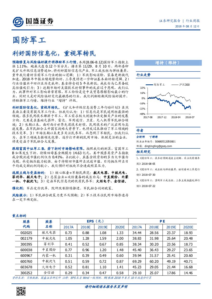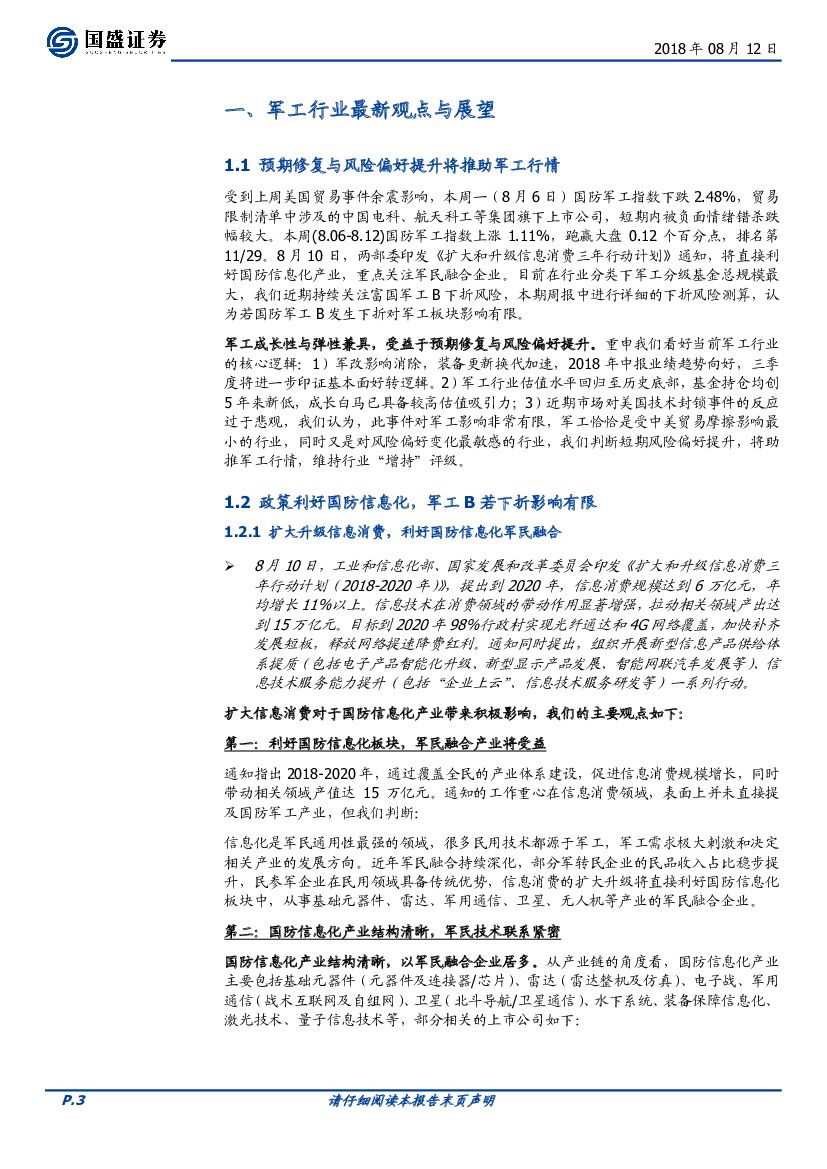 国盛证券:国防军工行业周报:利好国防信息化,重视军转民.pdf