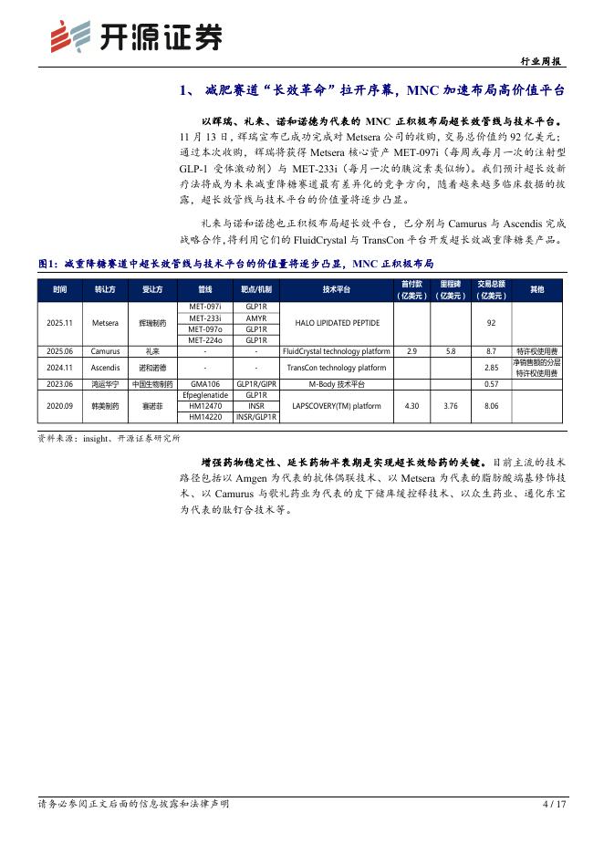 开源证券:医药生物行业周报:减肥赛道开启“长效革命”,MNC加速布局高价值平台.pdf