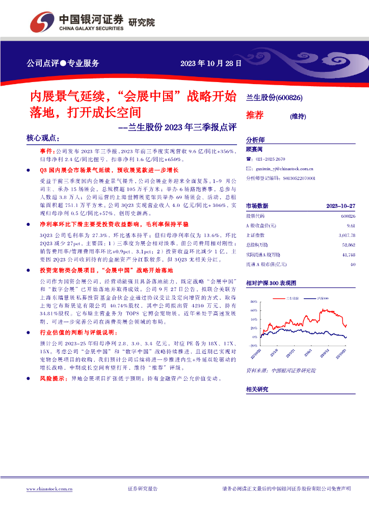 中国银河:【银河社服】兰生股份2023年三季报业绩点评:内展景气延续,“会展中国”战略开始落地,打开成长空间.pdf