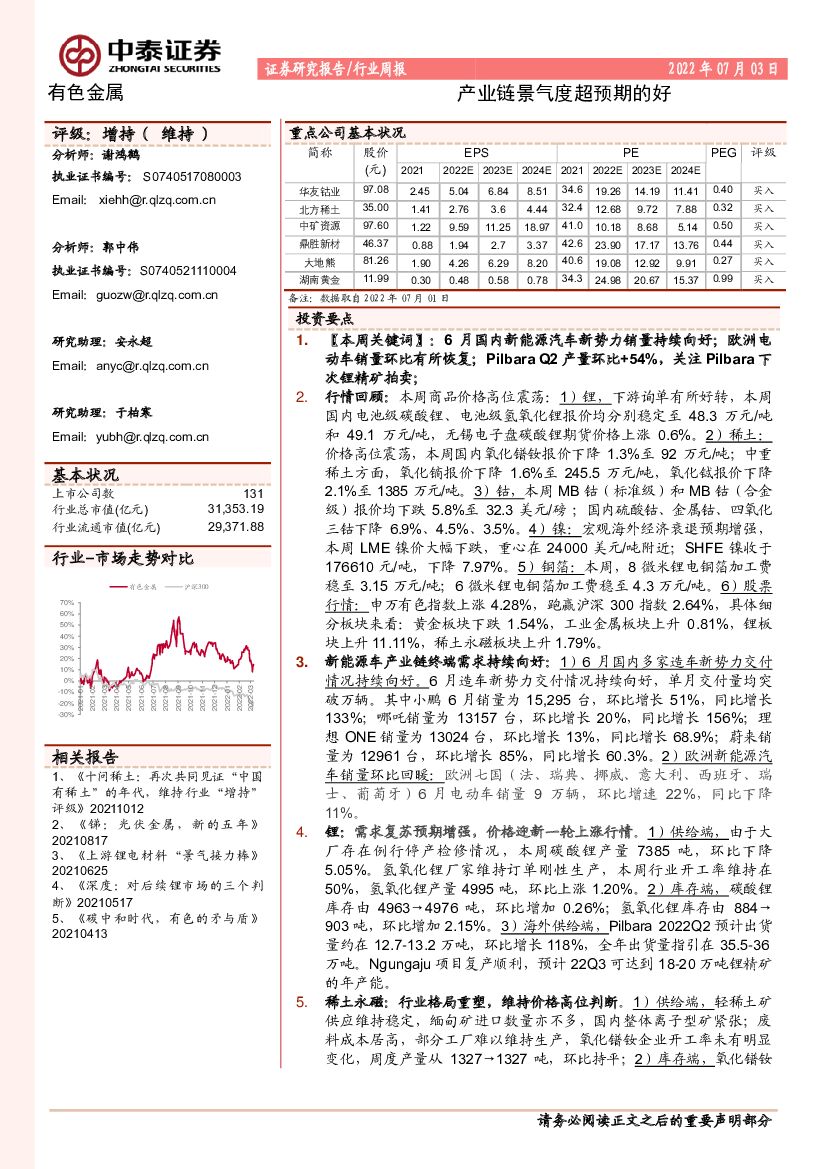 中泰证券:有色金属行业周报:产业链景气度超预期的好.pdf