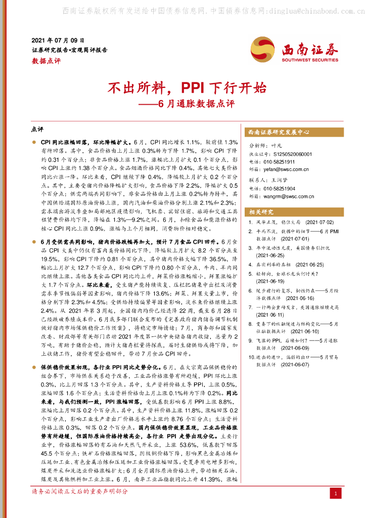 西南证券:不出所料,PPI下行开始-6月通胀数据点评.pdf