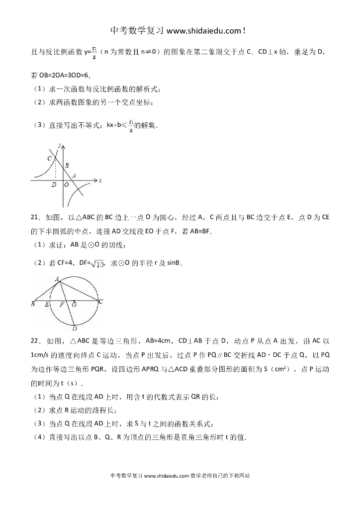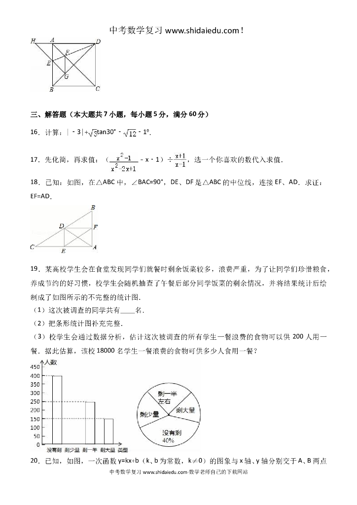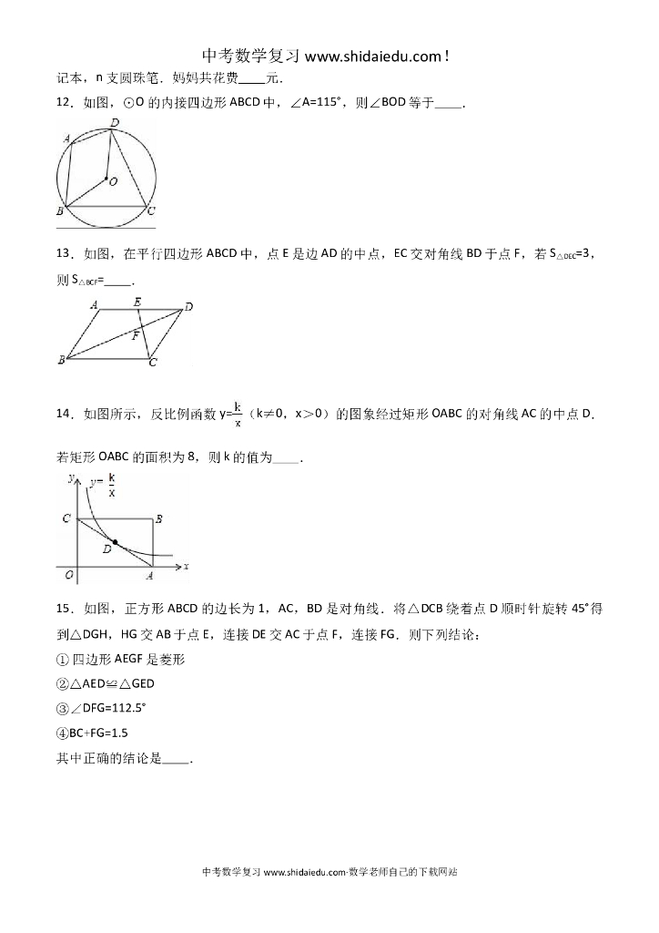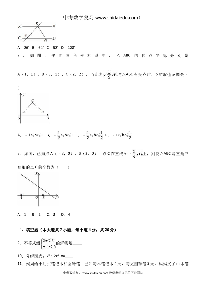 安徽省淮南市XX中学中考数学一模试卷--附答案解析.doc