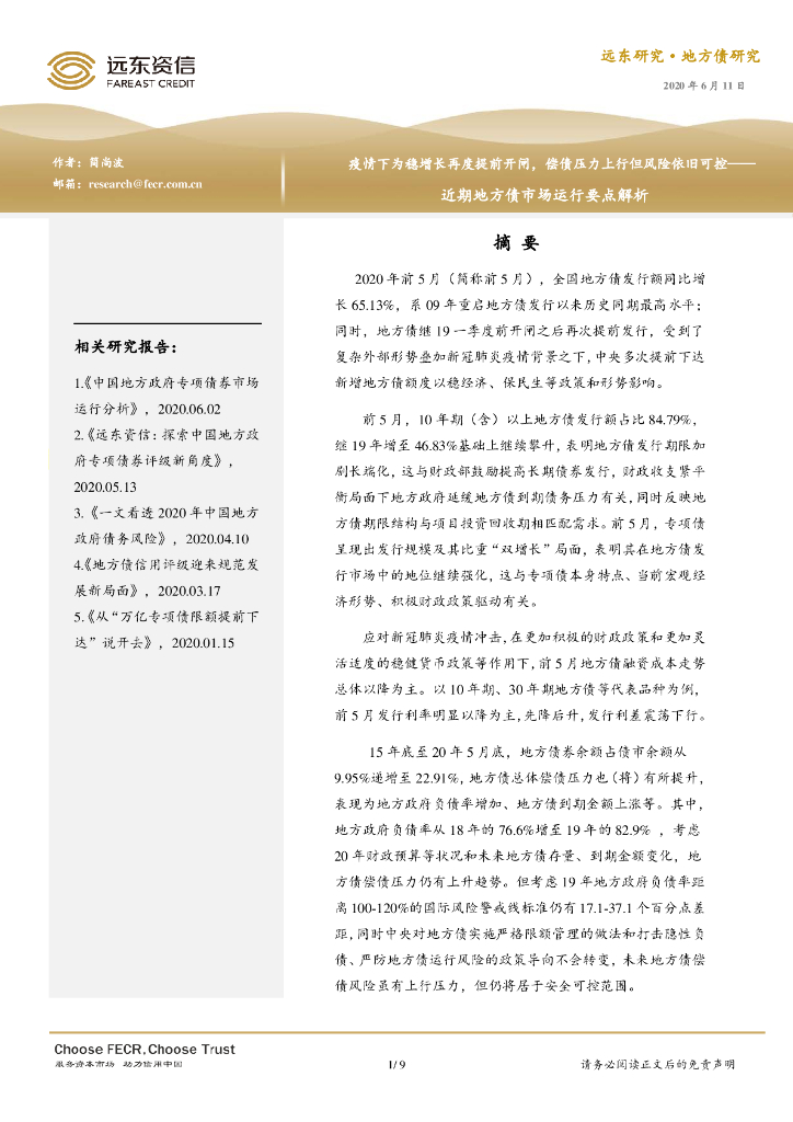 远东资信:疫情下为稳增长再度提前开闸,偿债压力上行但风险依旧可控——近期地方债市场运行要点解析.pdf
