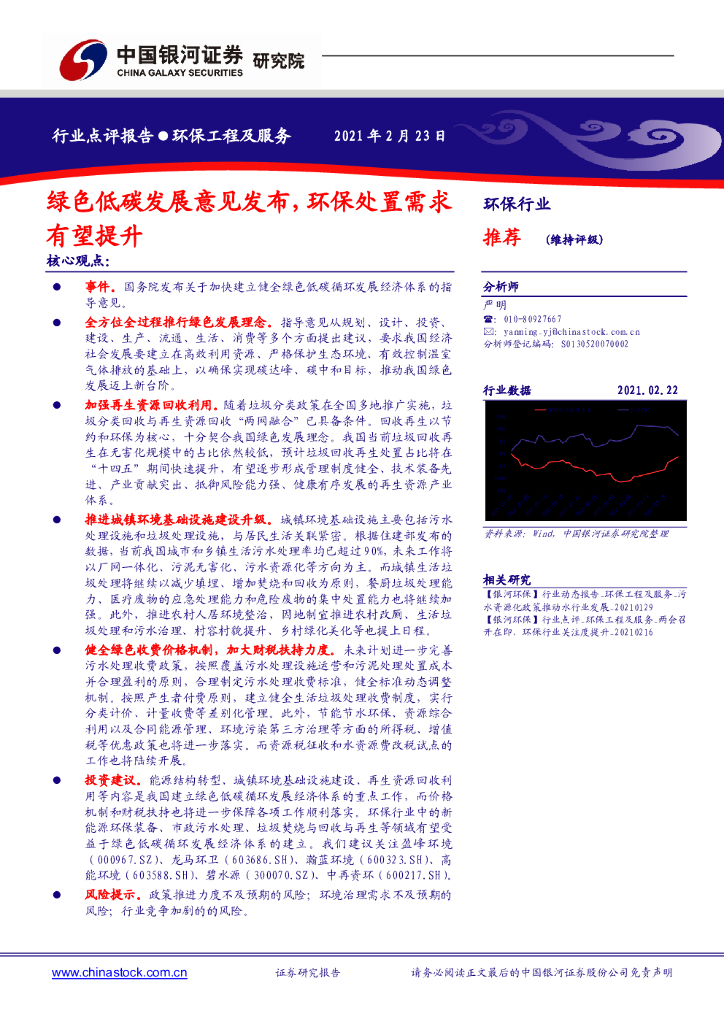 中国银河:环保工程及服务:绿色低碳发展意见发布,环保处置需求有望提升.pdf