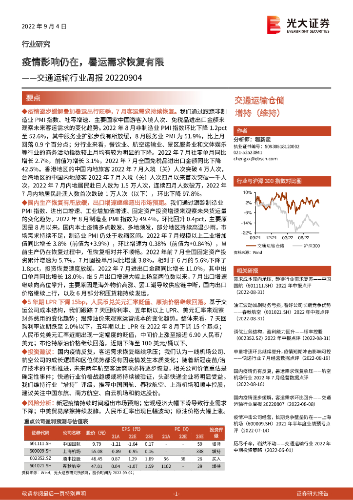 光大证券:交通运输行业周报:疫情影响仍在,暑运需求恢复有限.pdf