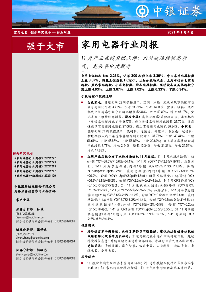 中银证券:家用电器行业周报:11月产业在线数据点评:内外销延续较高景气,龙头集中度提升.pdf