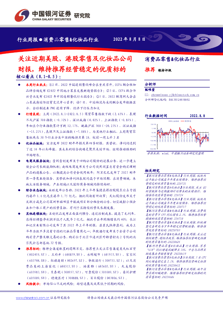 中国银河:消费品零售&化妆品行业周报:关注近期美股、港股零售及化妆品公司财报,维持推荐经营稳定的优质标的.pdf