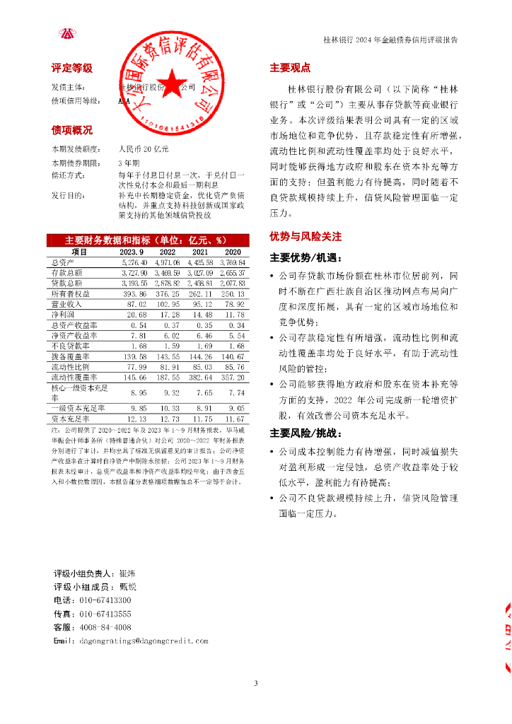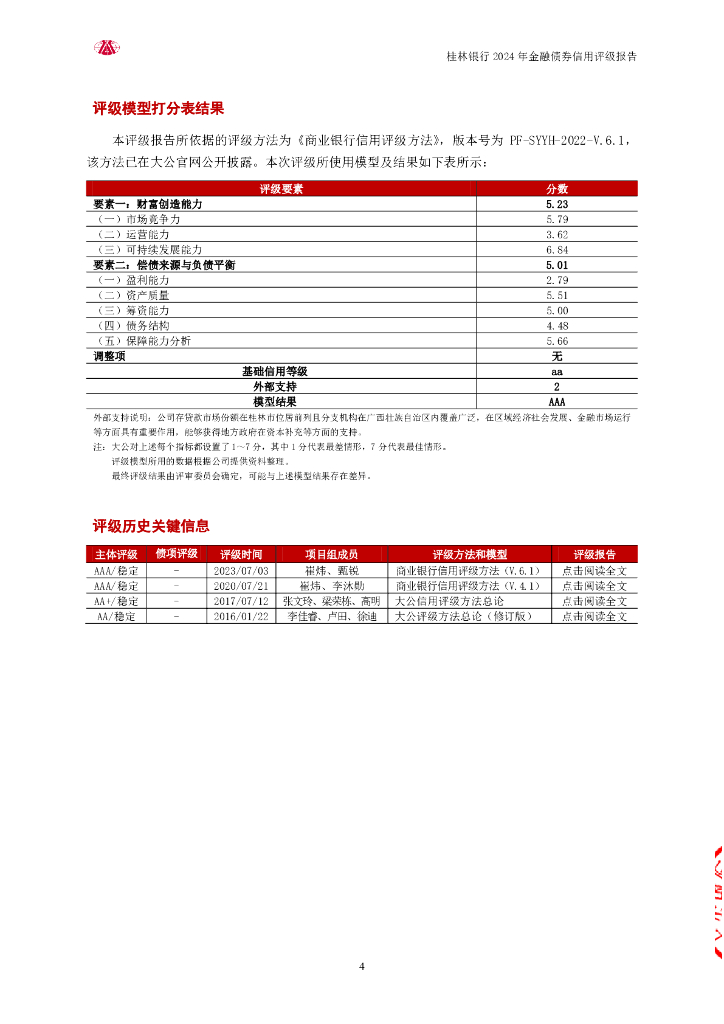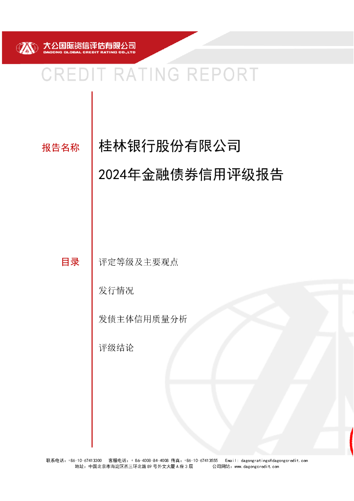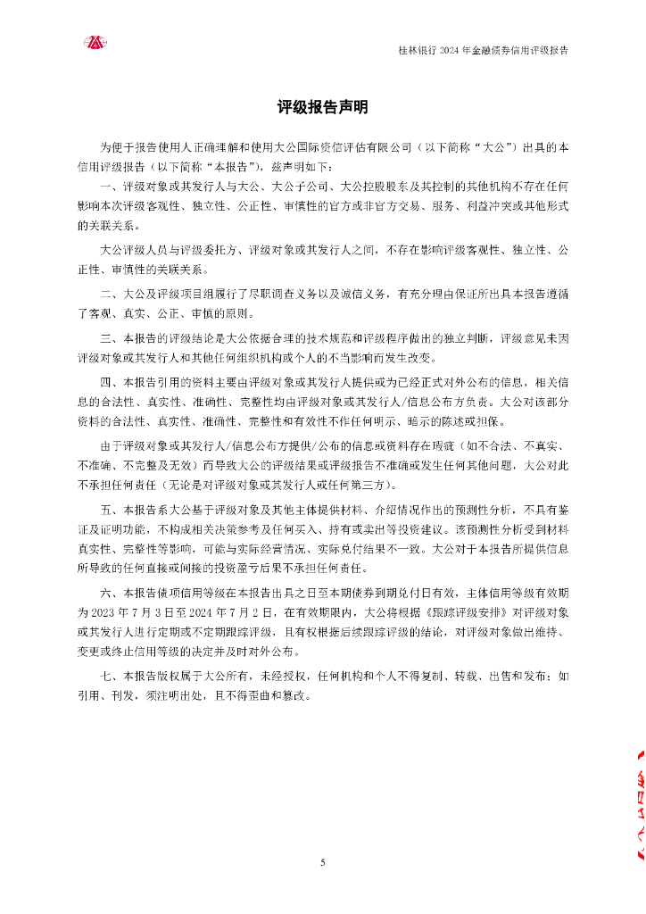 大公:桂林银行股份有限公司2024年金融债券信用评级报告及跟踪评级安排.pdf