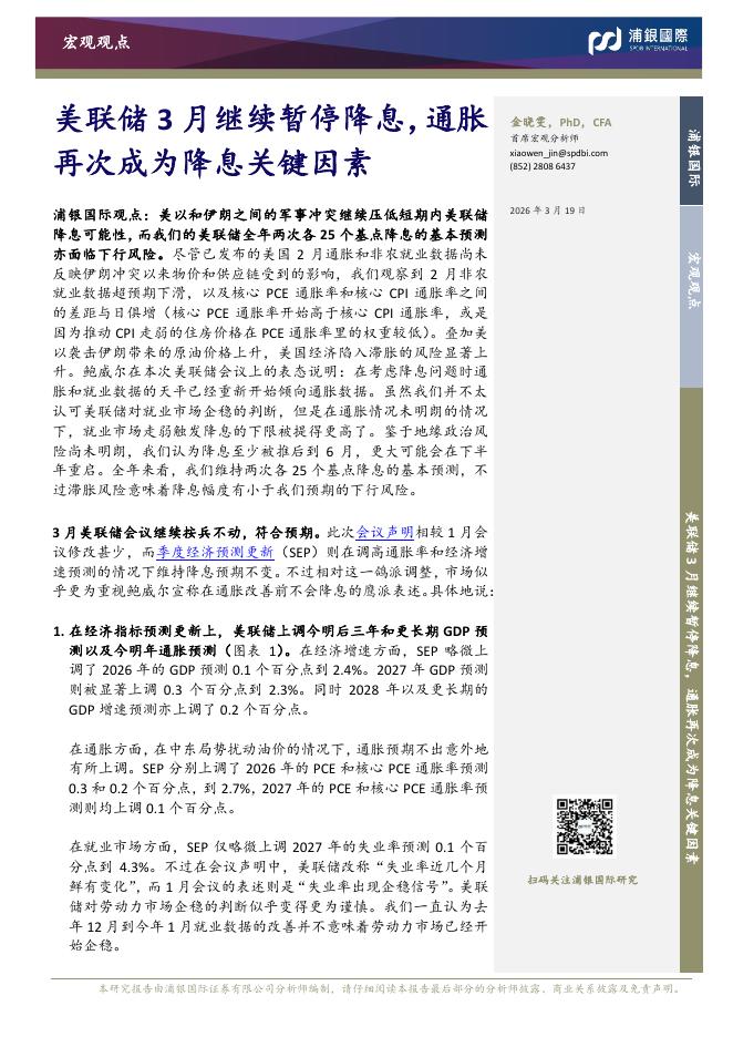 浦银国际证券:美联储3月继续暂停降息,通胀再次成为降息关键因素-260320.pdf