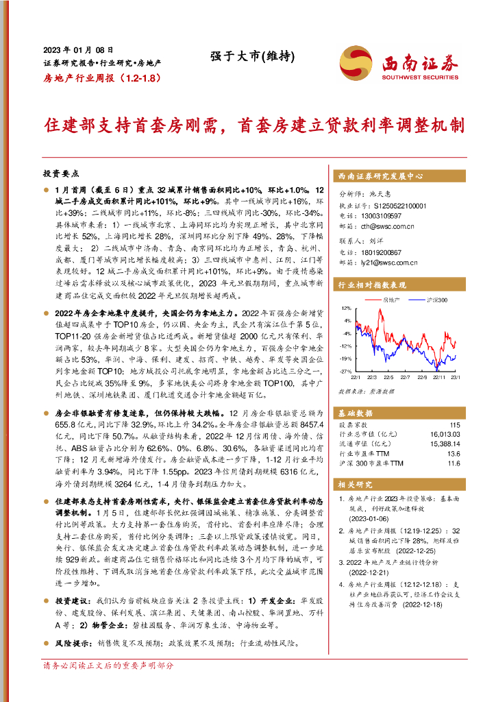 西南证券:房地产行业周报:住建部支持首套房刚需,首套房建立贷款利率调整机制.pdf