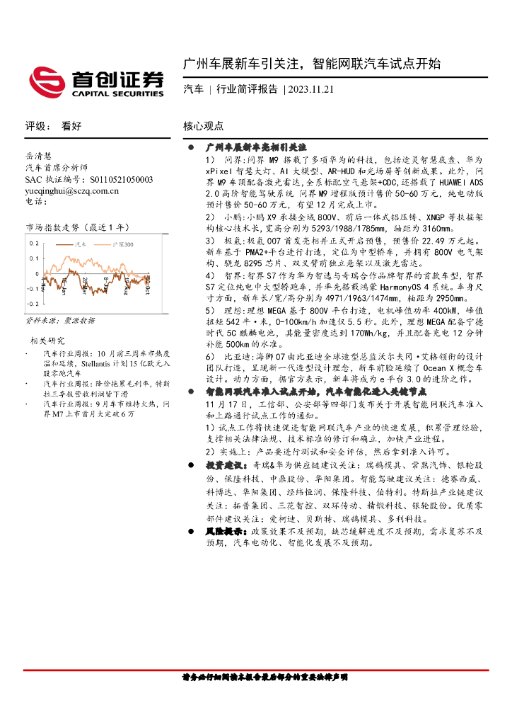 首创证券:汽车行业简评报告:广州车展新车引关注,智能网联汽车试点开始.pdf