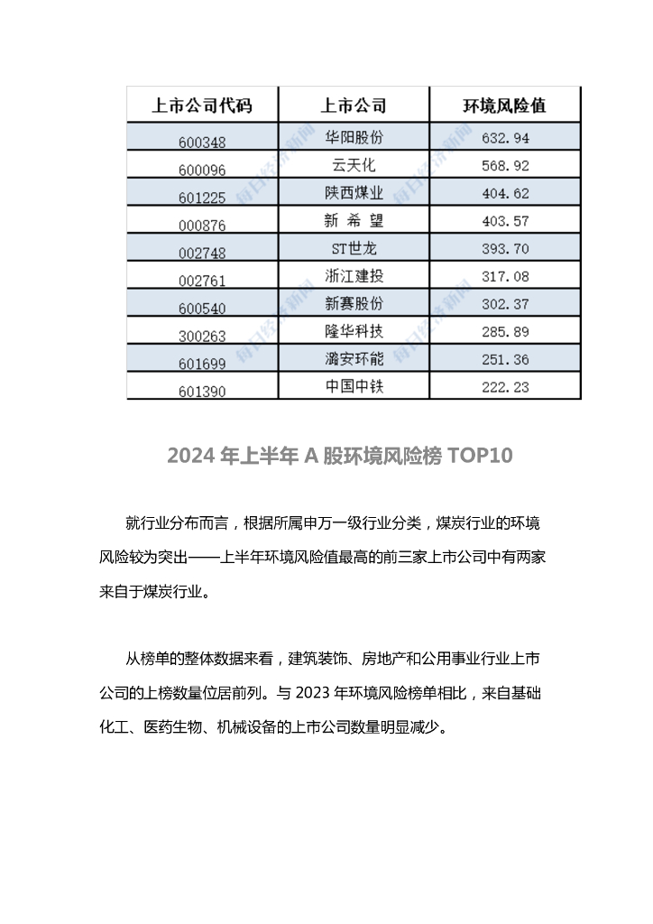 IPE公众环境研究中心:A股环境风险榜:2024年上半年256家上市公司登榜 整体环境风险表现有所改善.pdf