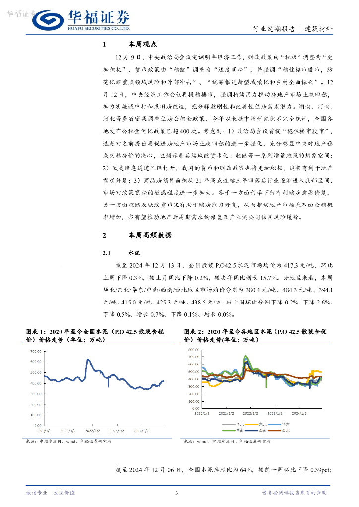 华福证券:建筑材料行业定期报告:中央定调“稳住楼市”,重视建材板块配置机会.pdf