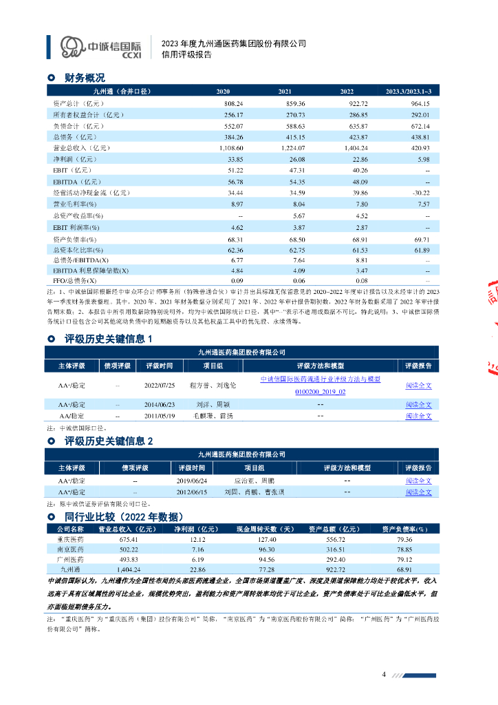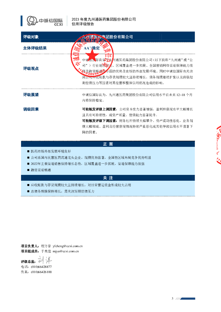 中诚信:九州通医药集团股份有限公司2023年度信用评级报告.pdf