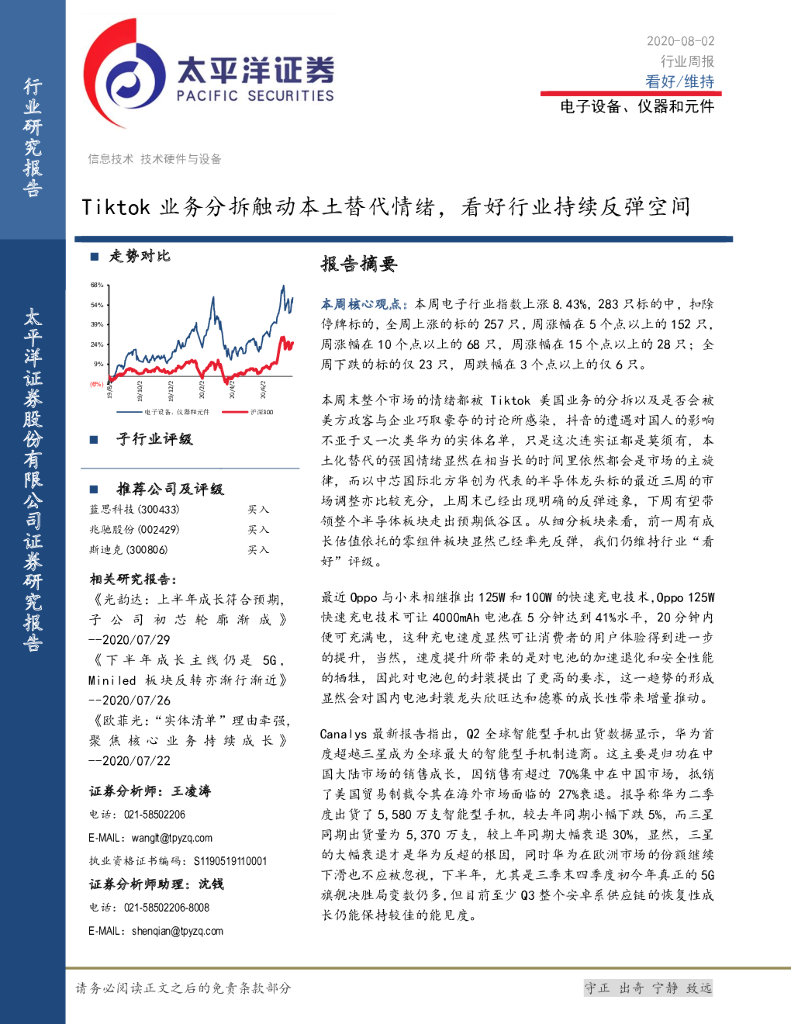 太平洋证券:电子设备、仪器和元件行业周报:Tiktok业务分拆触动本土替代情绪,看好行业持续反弹空间.pdf