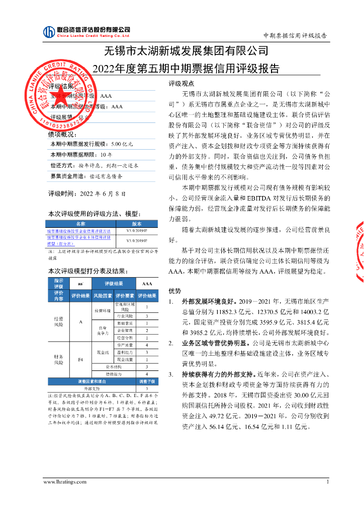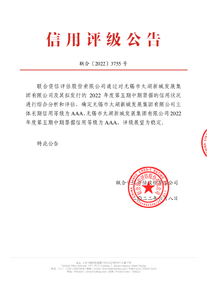 联合资信:无锡市太湖新城发展集团有限公司2022年度第五期中期票据信用评级报告.pdf