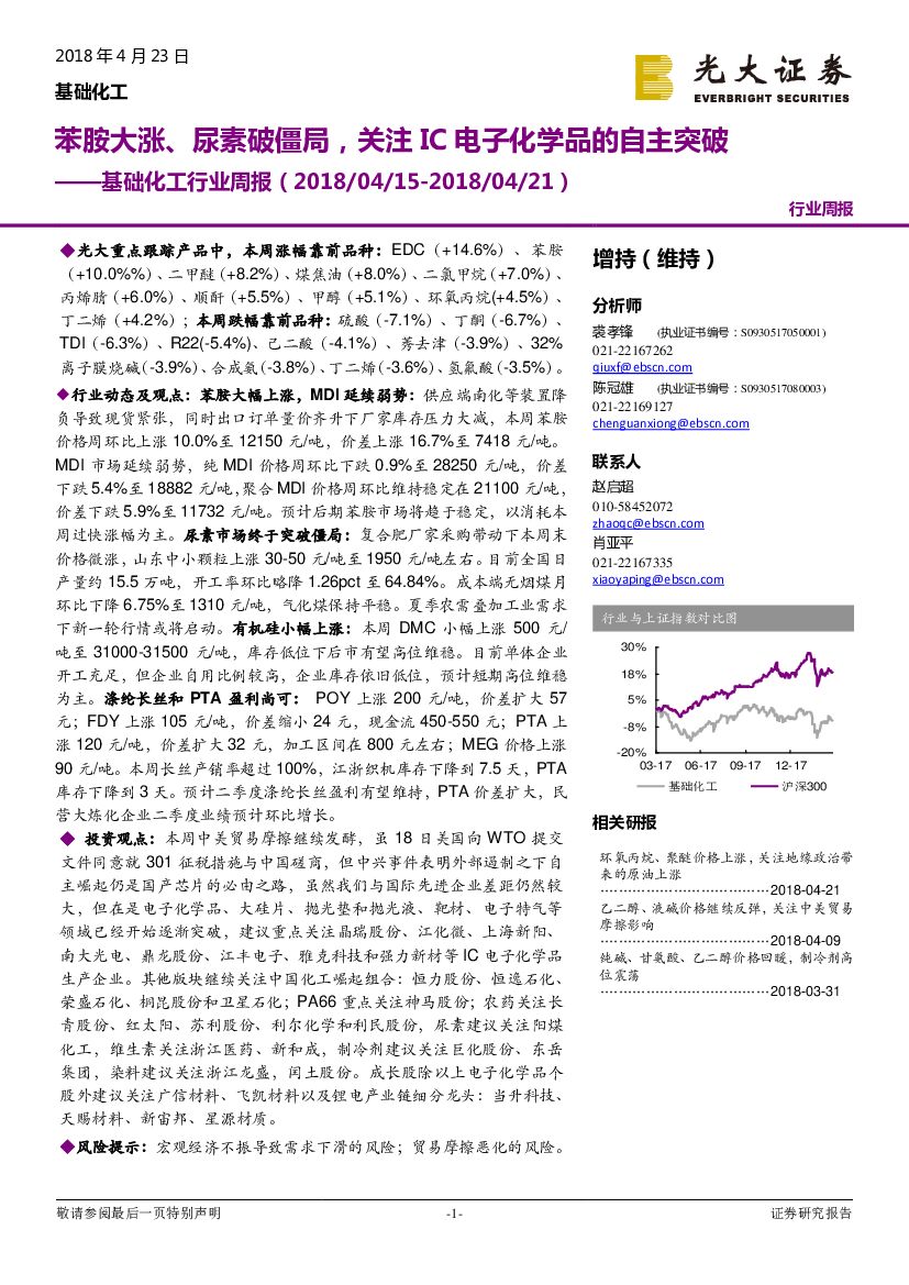 光大证券:基础化工行业周报:苯胺大涨、尿素破僵局,关注IC电子化学品的自主突破.pdf