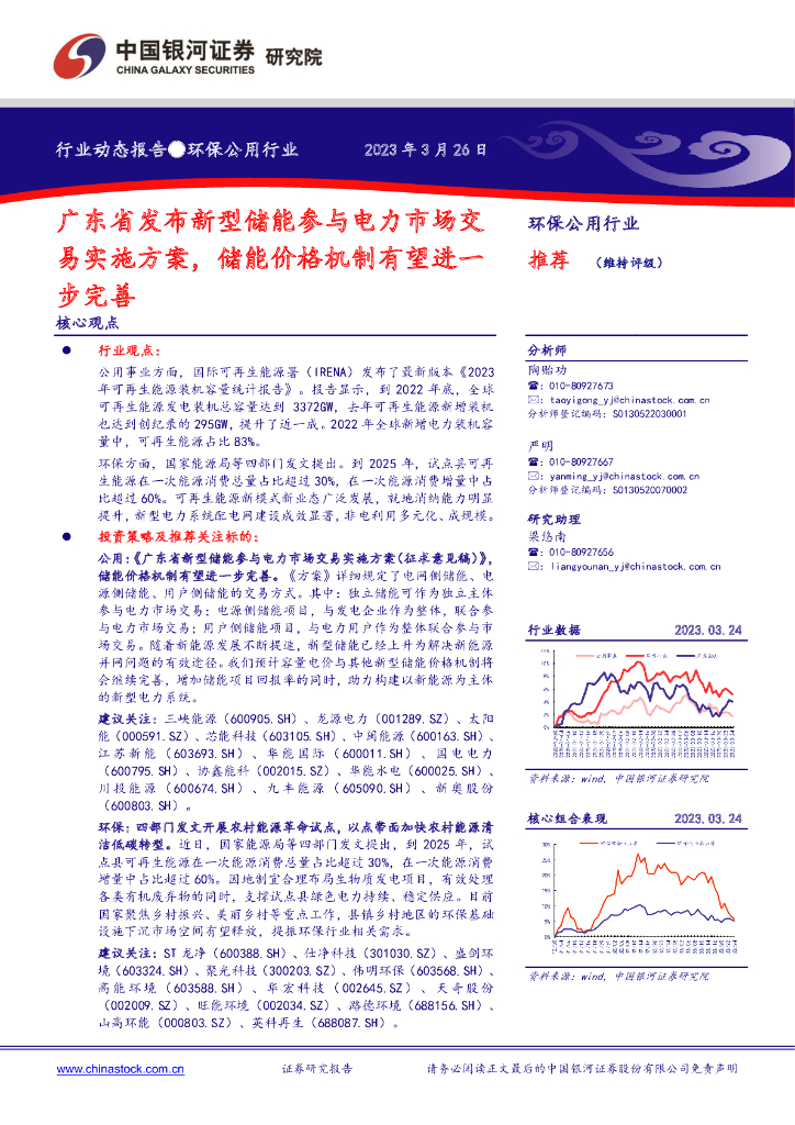 中国银河:环保公用行业动态报告:广东省发布新型储能参与电力市场交易实施方案,储能价格机制有望进一步完善.pdf