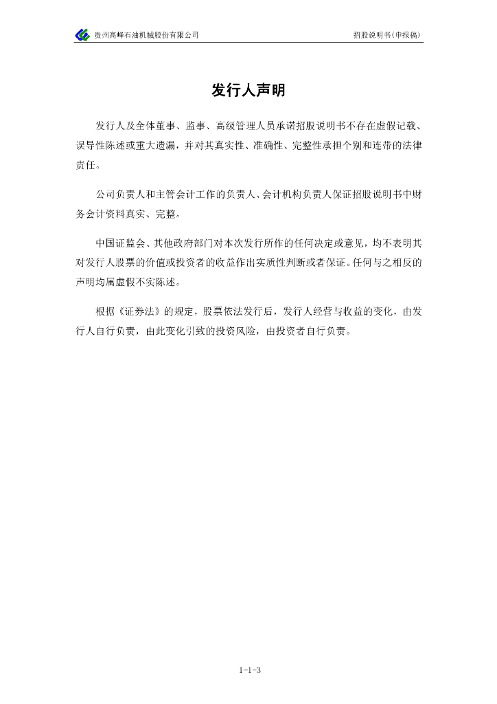 贵州高峰石油机械股份有限公司深交所创业板IPO上市招股说明书.pdf