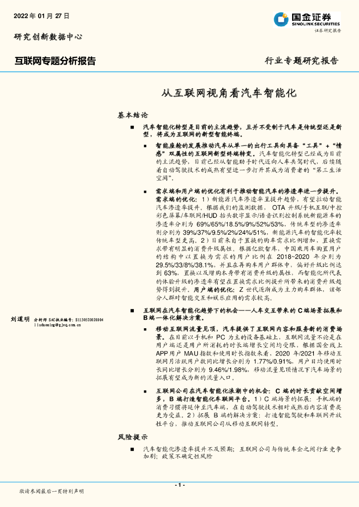 国金证券:互联网行业专题研究报告:从互联网视角看汽车智能化.pdf