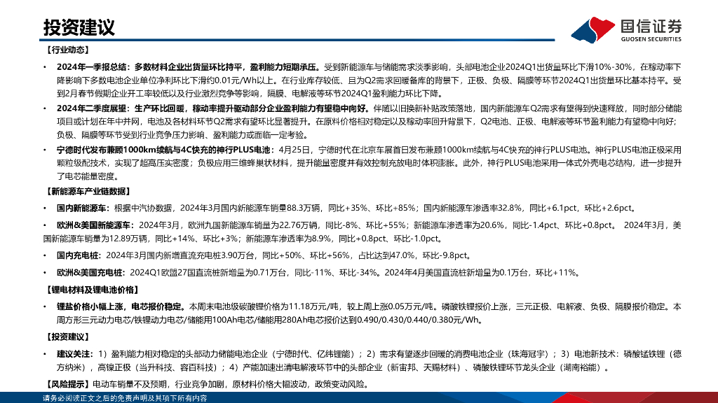 国信证券:锂电产业链周评(5月第1周):多数材料企业一季度销量环比持平,二季度需求回暖锂电排产显著提升.pdf