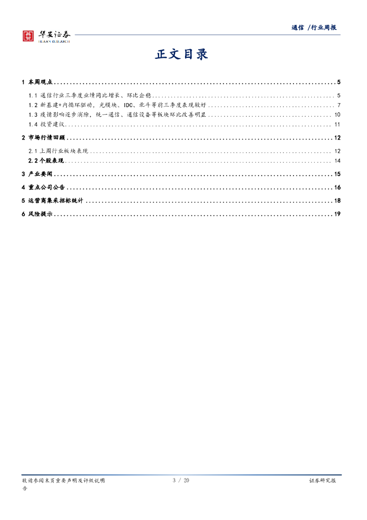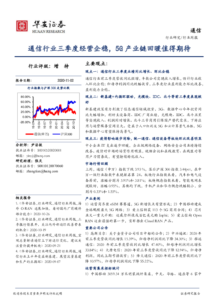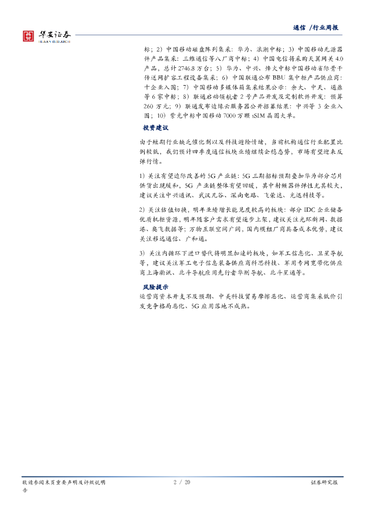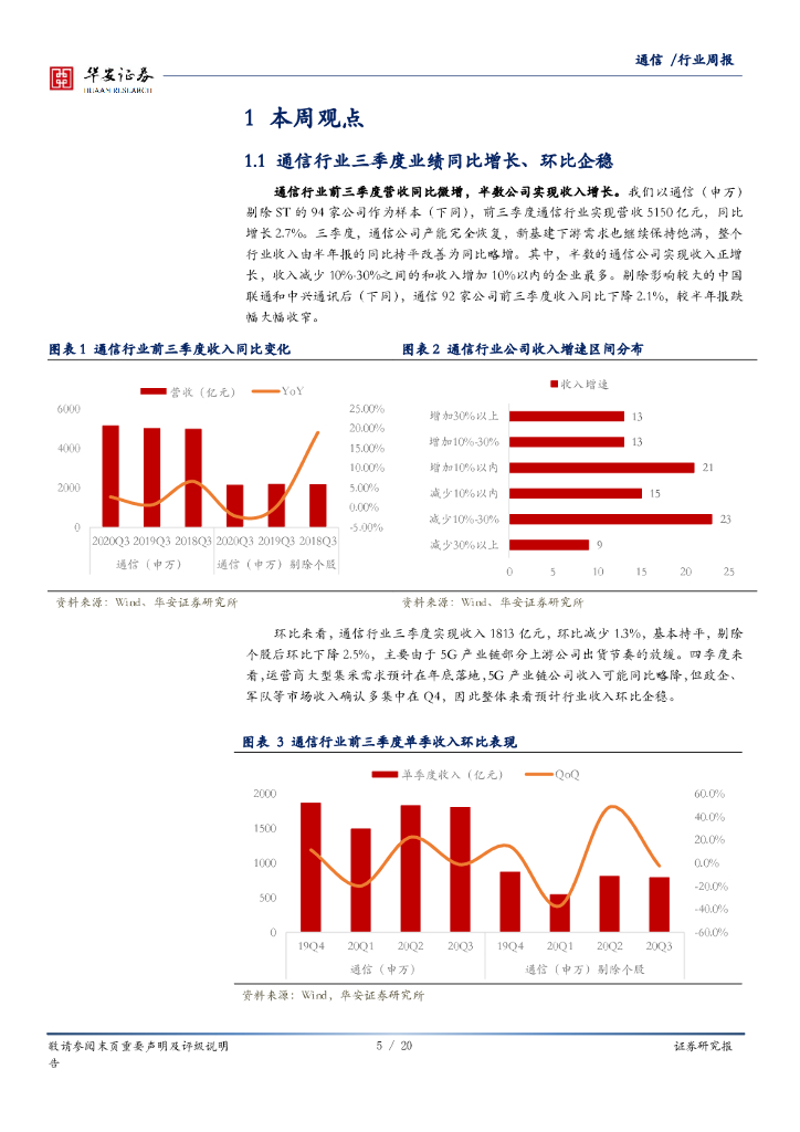 华安证券:通信行业周报:通信行业三季度经营企稳,5G产业链回暖值得期待.pdf
