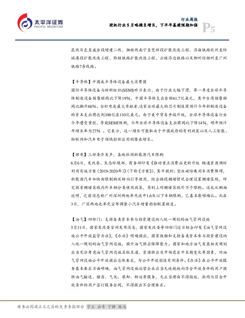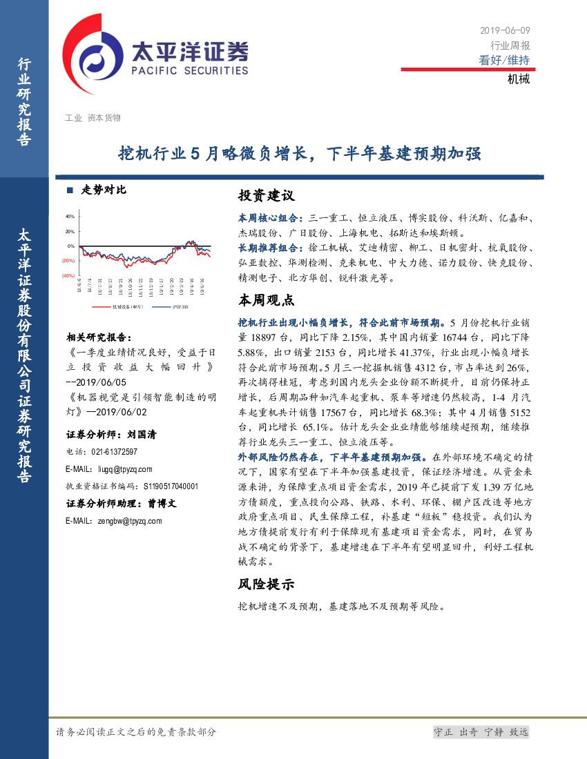 太平洋证券:机械行业周报:挖机行业5月略微负增长,下半年基建预期加强.pdf