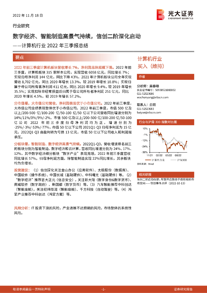 光大证券:计算机行业2022年三季报总结:数字经济、智能制造高景气持续,信创二阶深化启动.pdf