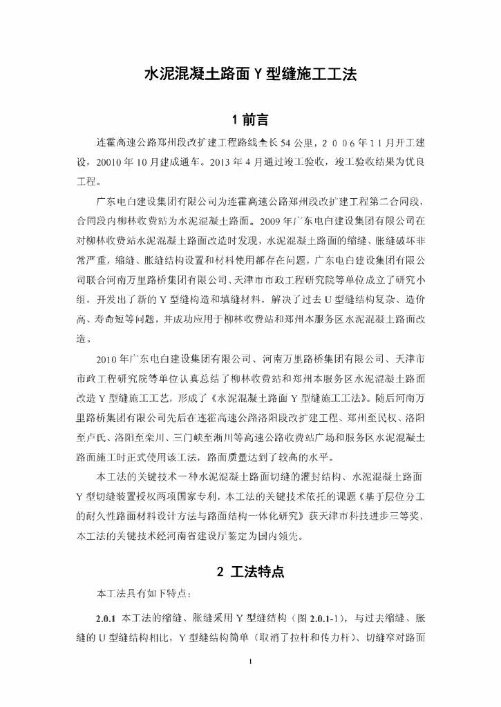 水泥混凝土路面Y型缝施工工法22页.pdf