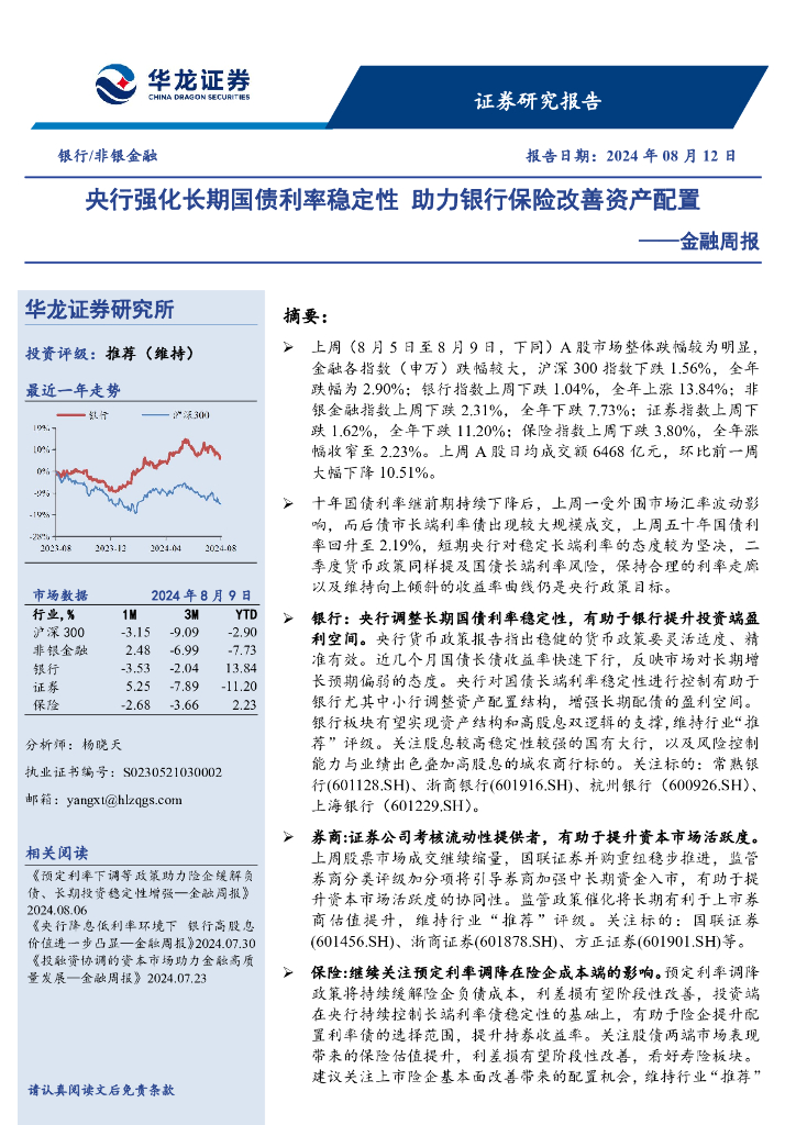 华龙证券:金融周报:央行强化长期国债利率稳定性助力银行保险改善资产配置.pdf