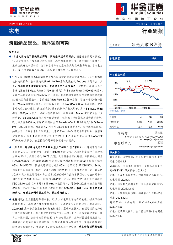 华金证券:家电行业周报:清洁新品迭出,海外表现可期.pdf