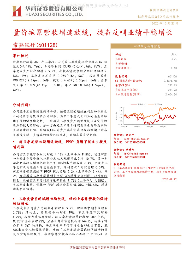 华西证券:常熟银行(601128)-量价拖累营收增速放缓,拨备反哺业绩平稳增长.pdf