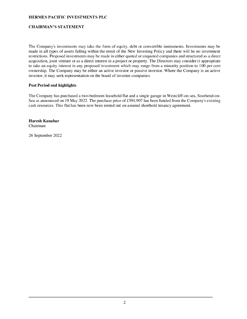 Hermes Pacific Investments plc(HPAC)2022财年年度报告(英文版).pdf