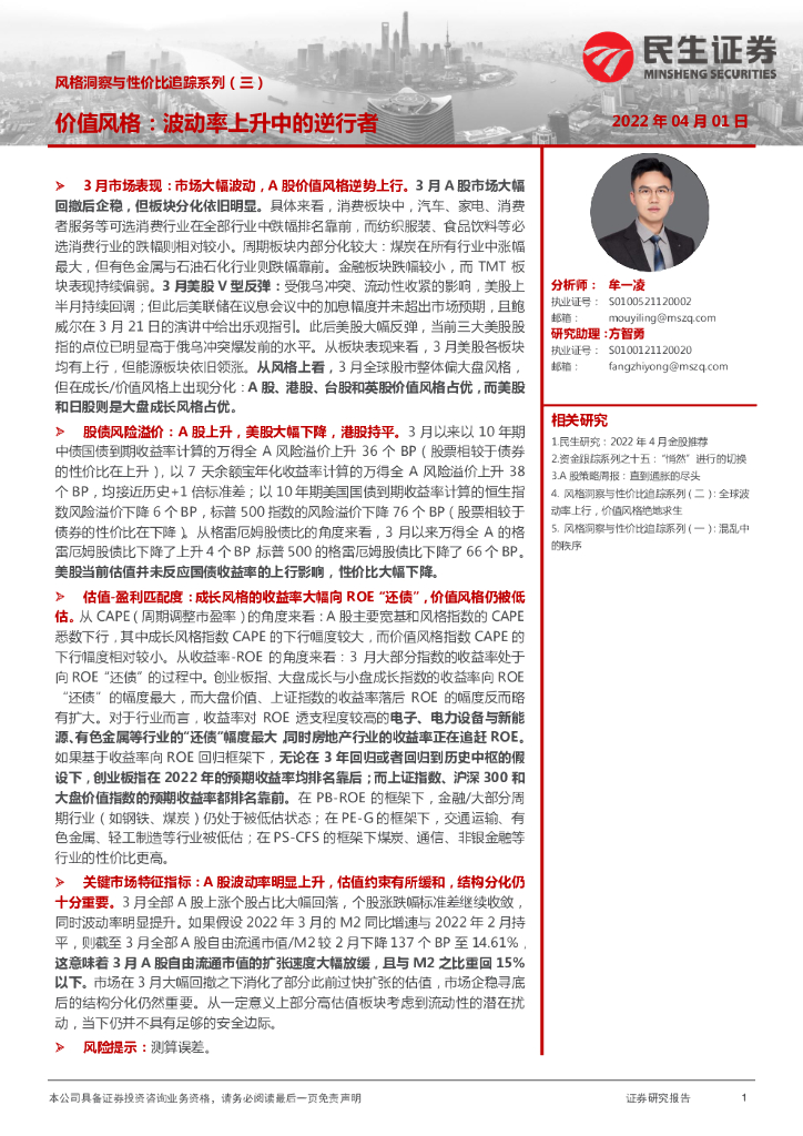民生证券:风格洞察与性价比追踪系列(三):价值风格:波动率上升中的逆行者.pdf