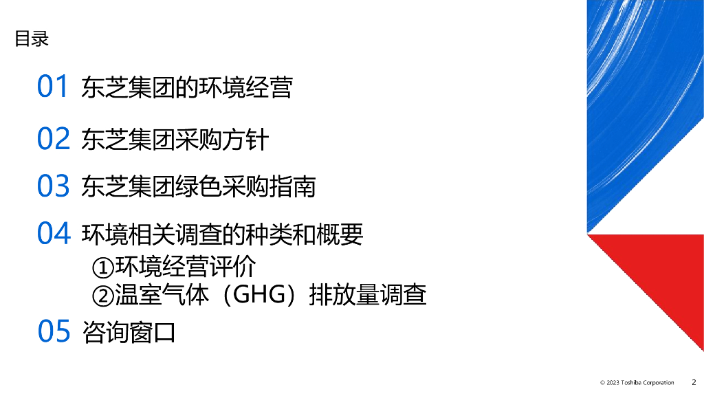 TOSHIBA:2023年度东芝集团供应商环境经营评价及温室气体(GHG)排放量调查报告(说明资料).pdf