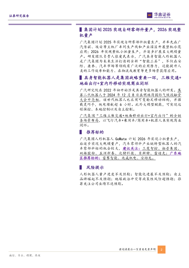 华鑫证券:汽车行业动态研究报告:广汽集团发布第三代人形机器人GoMate,有望在2026年实现小规模量产.pdf