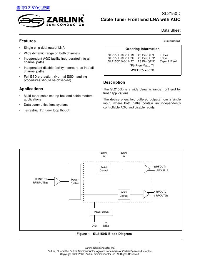 ZARLINK SL2150D 数据手册.pdf