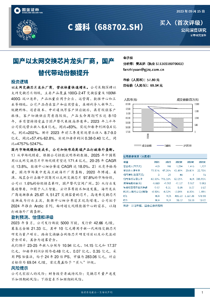 国金证券:盛科通信(688702)-国产以太网交换芯片龙头厂商,国产替代带动份额提升.pdf
