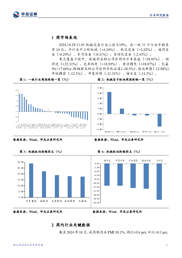 华龙证券:机械设备行业周报:10月PMI重回荣枯线上,人形机器人产业加速发展.pdf